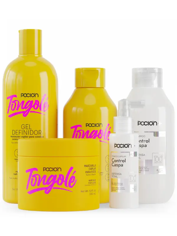 Contiene 2 productos: Shampoo Control Caspa, Crema para Peinar Leave on Tongolé, Mascarilla Tongole, Tónico Control Caspa y Gel Definidor de rizos Tongolé